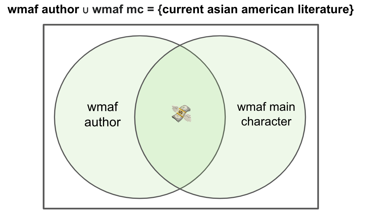 Think of it as a venn diagram, WMAF authors on one side, WMAF stories on the other; the union of these sets represents the vast majority of current, mainstream, celebrated Asian American stories.